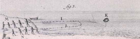 Per a calar-lo s’usava una embarcació moguda a força de rems. Un cop acabada  aquesta maniobra, que es feia a prop de la platja, les colles  s’agafaven  a les cames de l’art i llevaven  la xarxa des de la platja a força de braços amb l´ajut dels “estrops”. D´aquesta operació, que era molt dura, s´en deia “tirar l´art”.  A mesura que l´art avançava cap a la platja anava agafant el peix que es trobava al seu camí. L’art el tiraven la gent més humil de les poblacions. Per això la pesca amb arts de platja era considerada com un emblema de la misèria.