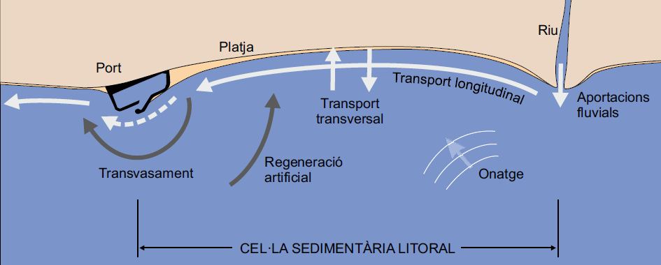 La variació del traçat de la línia de costa ve donada pel balanç entre les pèrdues i els guanys de sorres. El seu valor final és fruit de l´equilibri dinàmic entre els agents constructius producte dels aportació de sediments a través del cicle geològic extern i els agents destructius conseqüència sobretot de l’onatge, dels temporals i de la pròpia activitat humana.