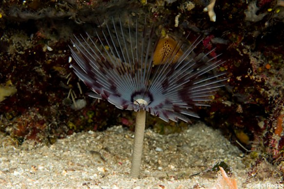 Precisament la presència d´aquest plomall de brànquies li donen a l´animal un aspecte molt més semblant a una planta que no pas a un cuc. Aquest dubte sobre si és una animal i una planta queda fàcilment esvaït quan en observar-lo en deteniment ens adonem que el plomall es retreu sobtadament dins el tub quan el poliquet detecta alguna mana de perill. Tant el plomall de mar com la palmereta segreguen una substància còrnia per a fabricar aquest tub i sovint aquest està recobert de partícules de sorra i d´una substància mucosa.
