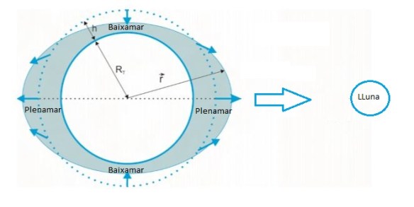 La força d´atracció gravitatòria entre la terra i La Lluna deforma les masses d´aigua de mars i oceans i és la responsable de les marees.