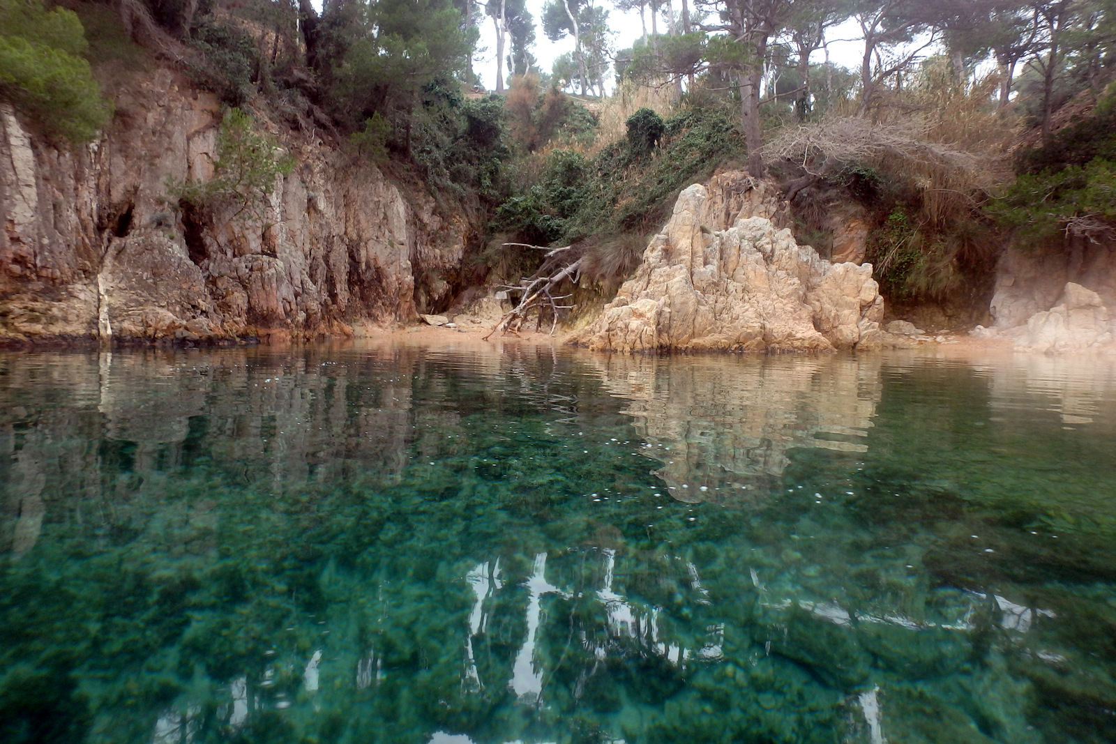 Si recorrem l’espai de sud a nord, el primer element destacable és el conjunt format per la platja del Cros i la de Canyelles, aquí es troben uns dels fons marins més ben conservats de tot el Mar d’Amunt amb alguers de Posidònia (Posidonia oceànica) i de Cimodocea (Cymodocea nodosa). Els fons rocosos d’aquestes platges acullen un bosc d’algues format bàsicament pel pèl sauper (Cystoseira mediterranea i Cystoseira compressa). I entre les seves mates es pot identificar l’espècie Cystoseira crinita, descrita en molt pocs punts de la Costa Brava. Precisament en l’alguer de la platja de Canyelles s’està fent una prova pilot per a replantar feixos de Posidònia.