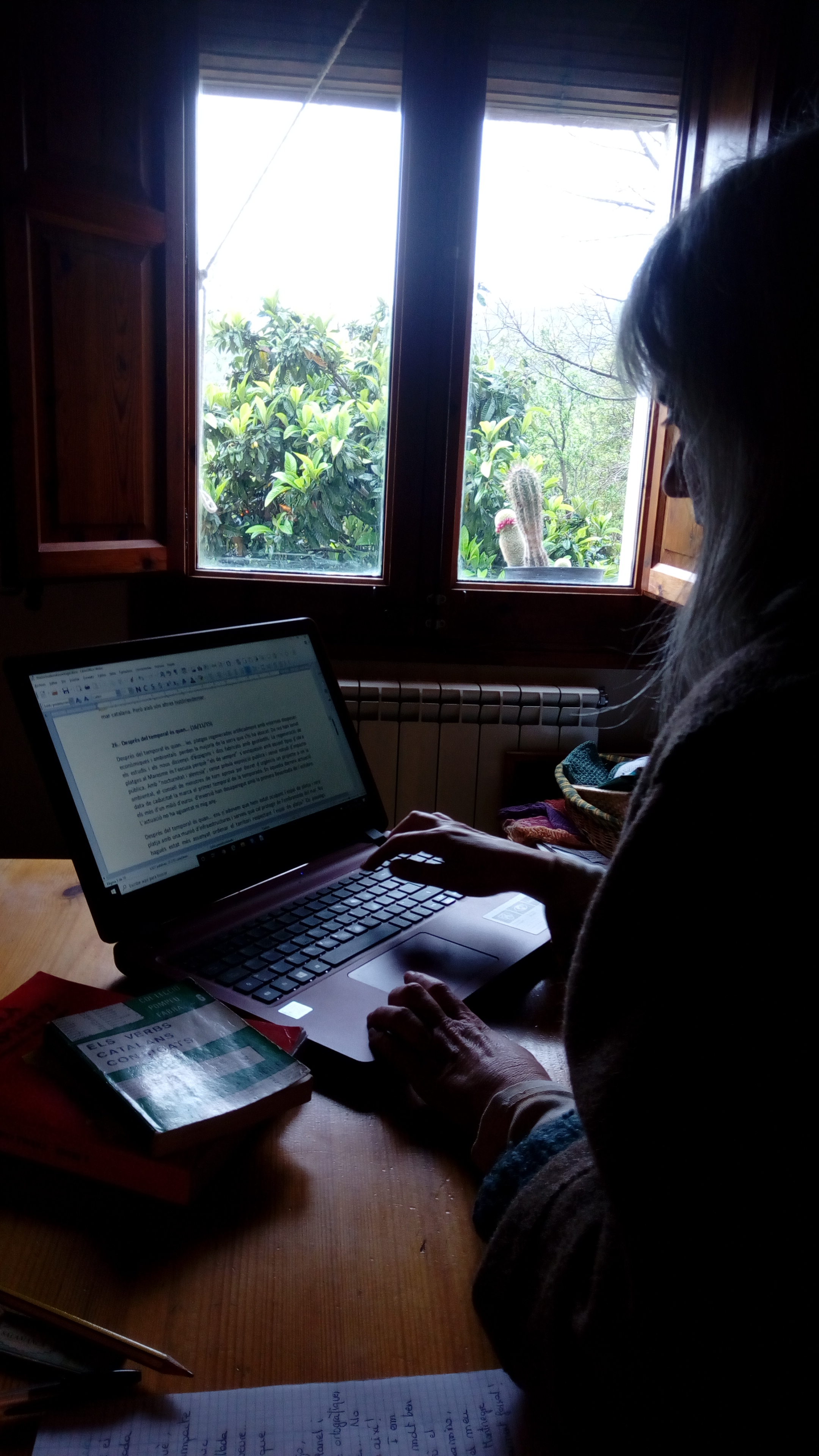 L’Assumpta és l’encarregada de la revisió i correcció dels textos que formaran part del llibre. Una feina feixuga i minuciosa. Els textos originals van ser escrits per ser penjats al blog, cada setmana una nova entrada. Ara, cal fer una revisió acurada i corregir el que calgui. Fa uns dies, coincidint amb el temporal de les faves, va començar la seva feina.