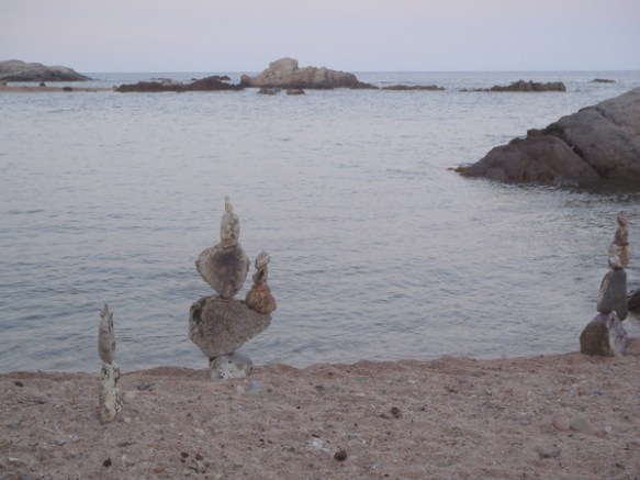 Si alguna vegada us heu acostat per Cala Estreta, es molt possible que sapigueu de que parlo; Artistes, del tot anòmins, construeixen les seves obres desafiant la força de la gravetat amb les pedres i els còdols que troben per l´entorn. Amb elles creen unes formes, que a primer cop d’ull, sembla que siguin impossibles. Són les escultures efímeres de Cala Estreta.