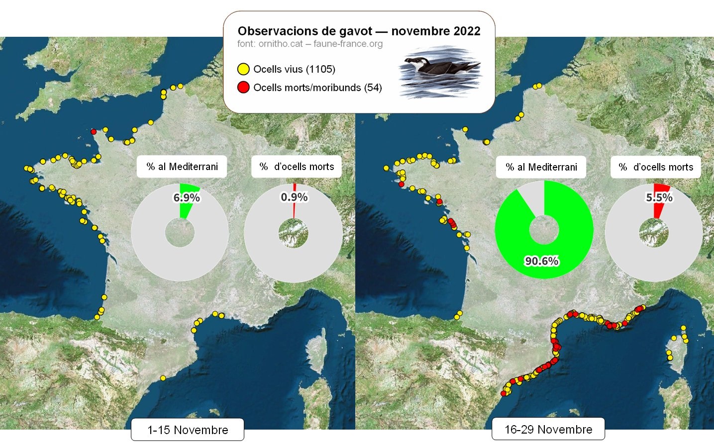 El gavot és una ocell marí que té les seves àrees de cria a l’Atlàntic Nord. Són ocells pelàgics però tenen el costum de resseguir la línia de costa. Té una població mundial d’unes 70000 parelles i la major part nidifica a la costa d’Islàndia. A Catalunya cada any arriben uns pocs exemplars a l’hivern. Normalment les àrees d´hivernació tradicionals són la costa de la Bretanya francesa, de les Illes Britàniques o d’Irlanda. El que és extraordinari aquest hivern respecte als darrers anys, és el nombre d’albiraments que s’ha fet fins ara i que superen en escreix la mitjana que s’han produït en els darrers quaranta anys. Aquest novembre, segons dades de l’ICO, s’han fet més d’un centenar observacions mentre que la mitjana dels darrers deu anys no arriba als vuit exemplars.